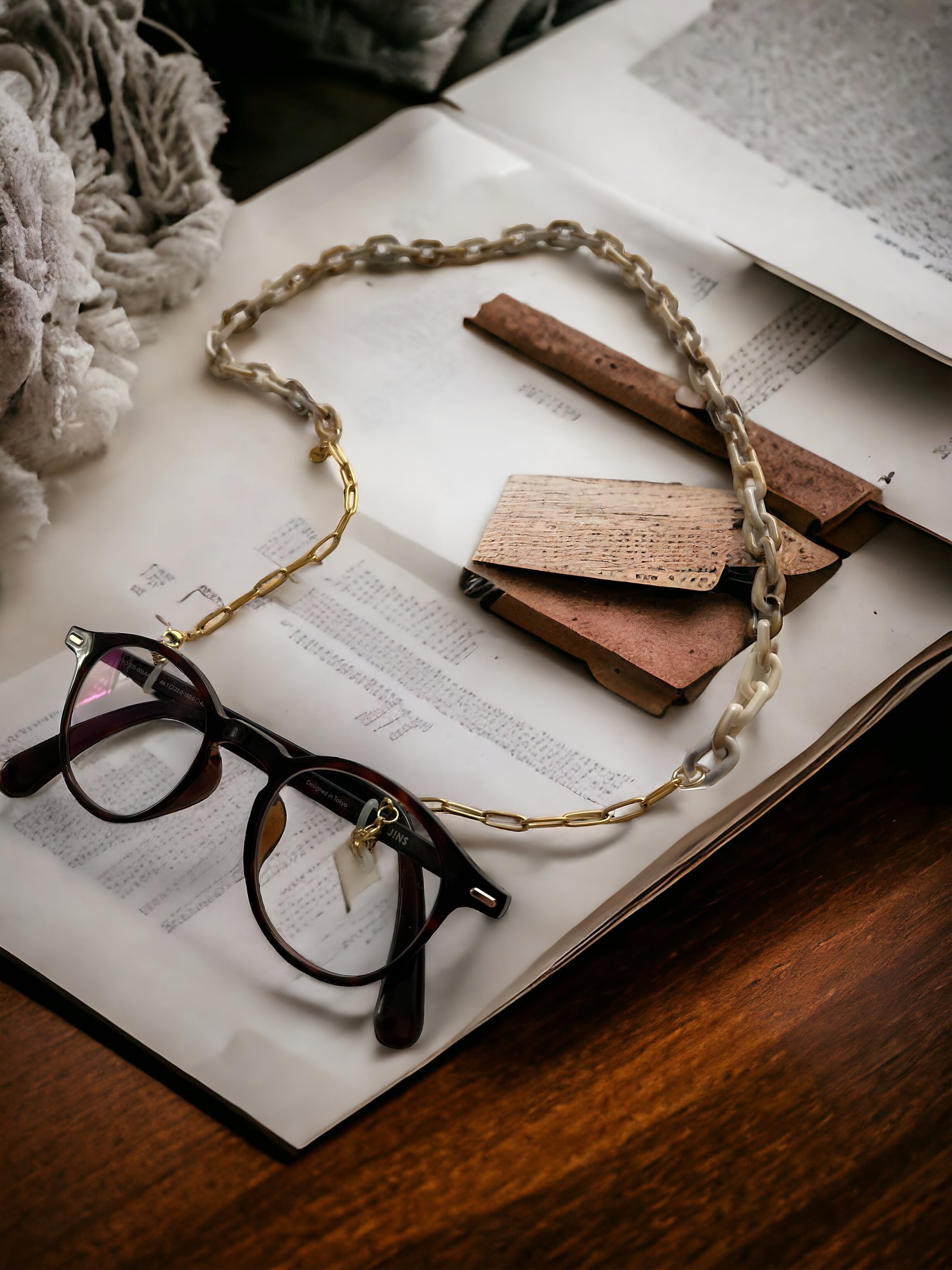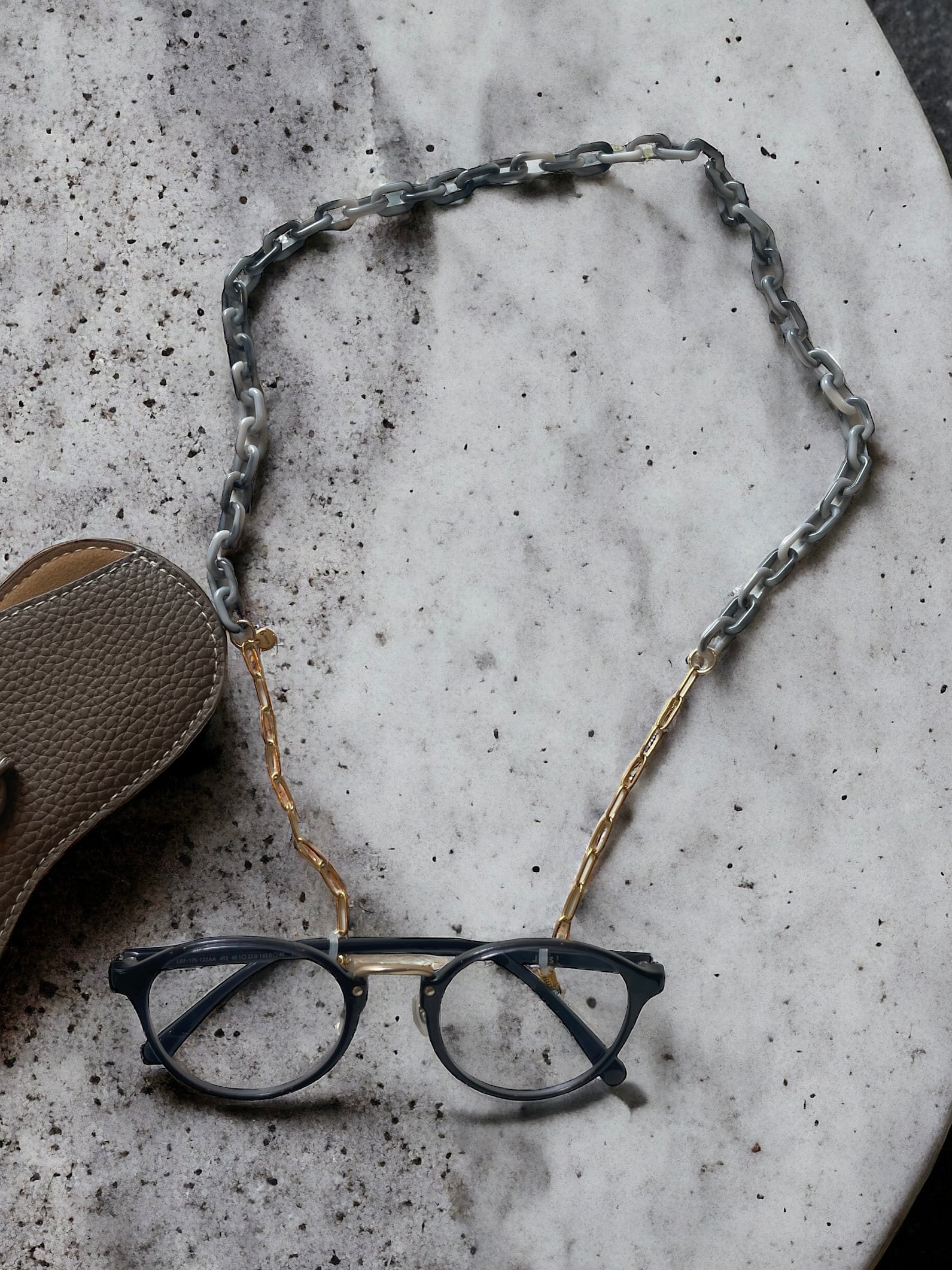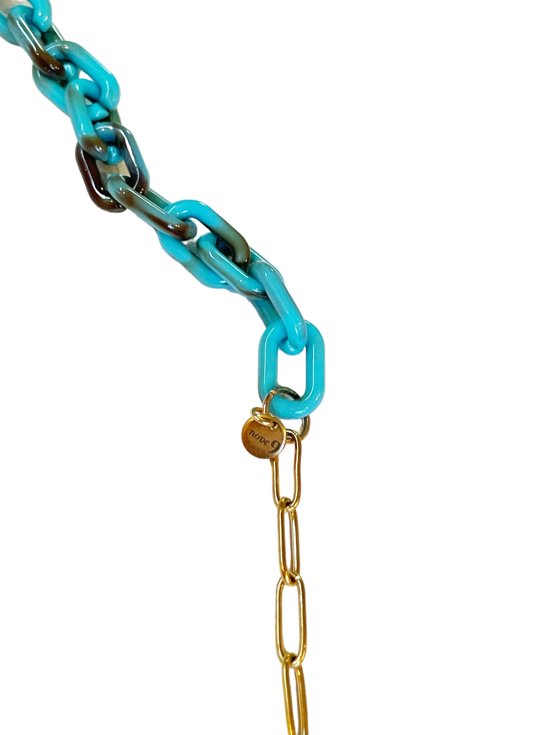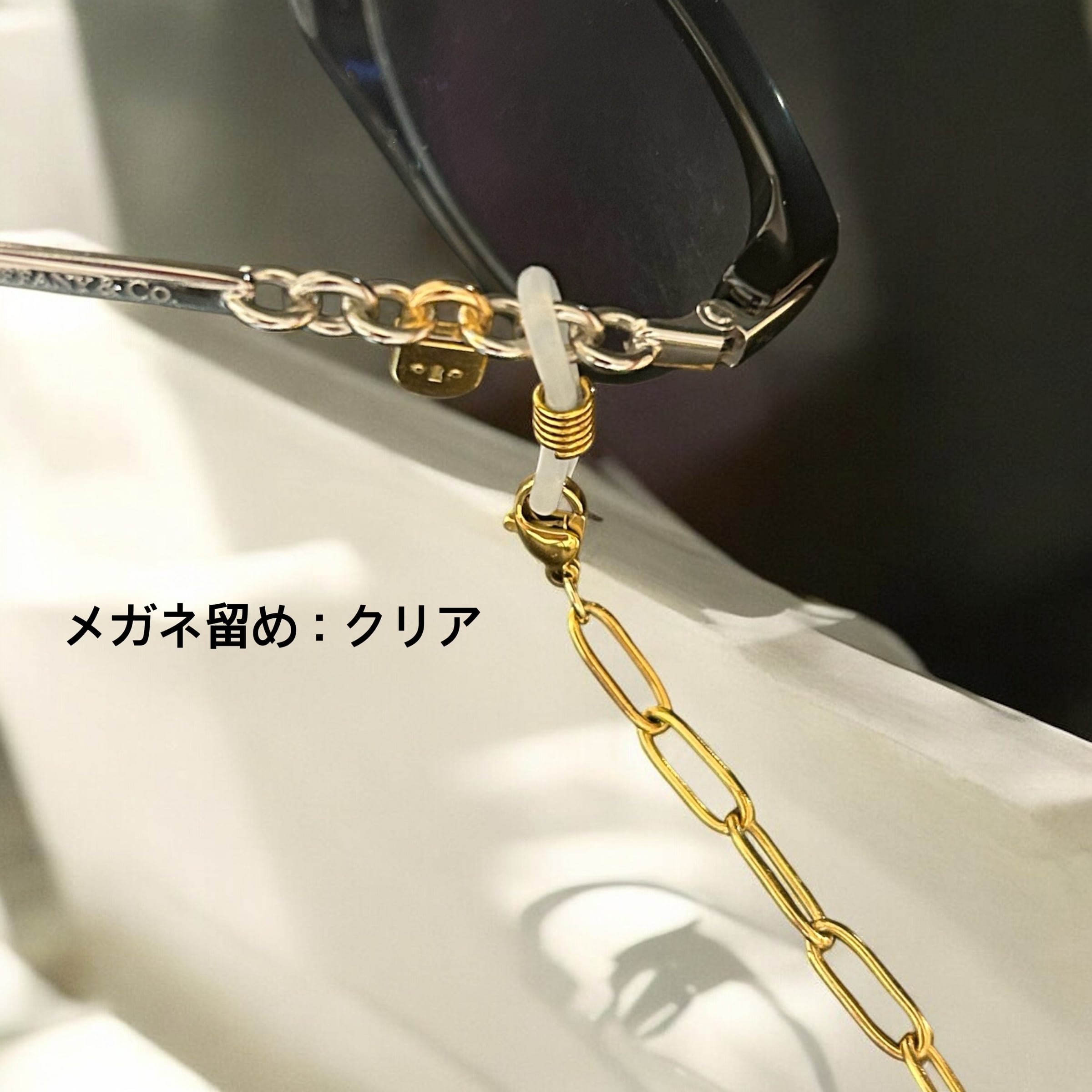 POPなアクリルチェーンとnove9のアイコンでもあるクリップチェーンを組み合わせたグラスチェーンです。