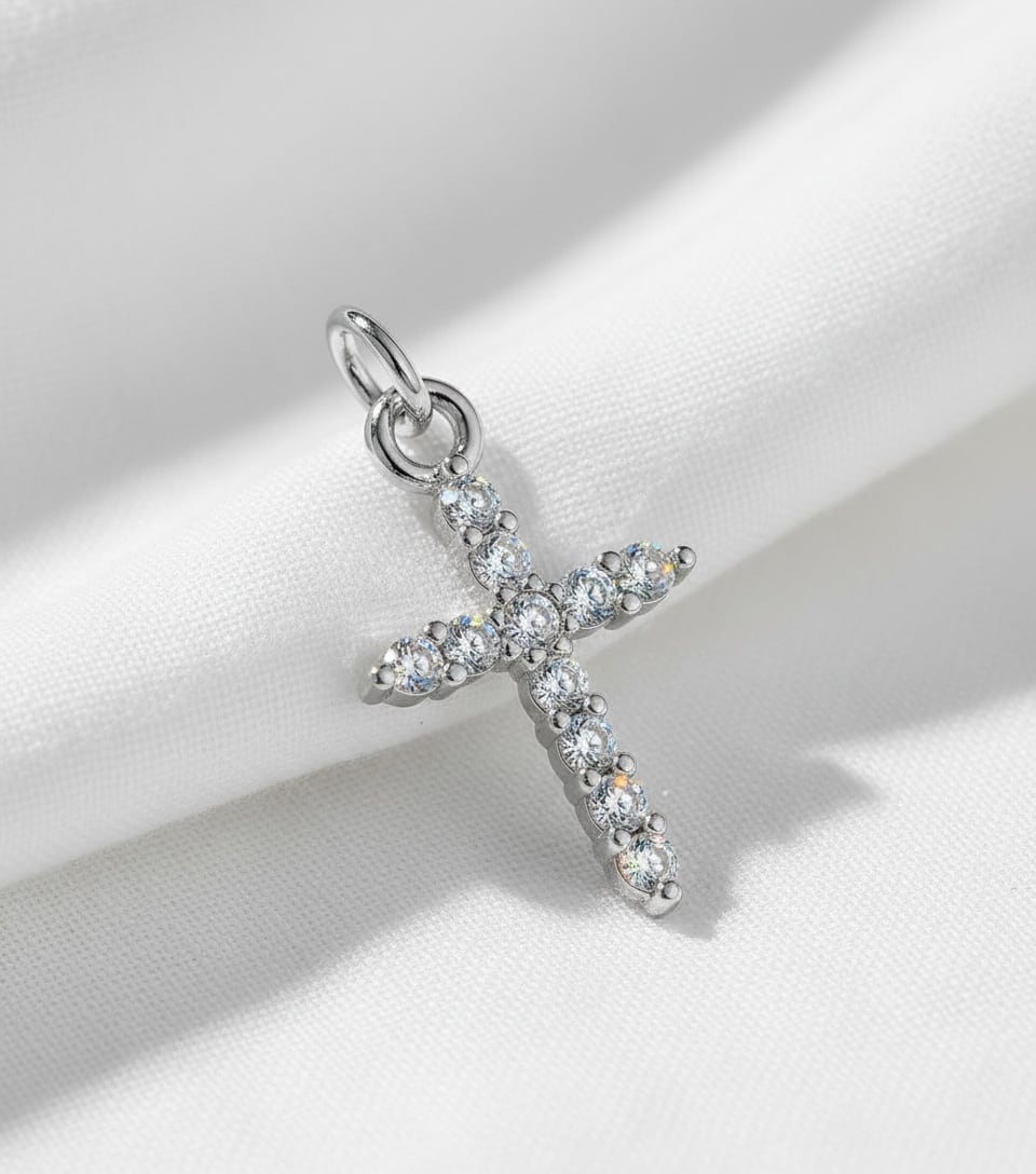 十字の先がシャープにデザインされた、シンプルなシルバークロス。