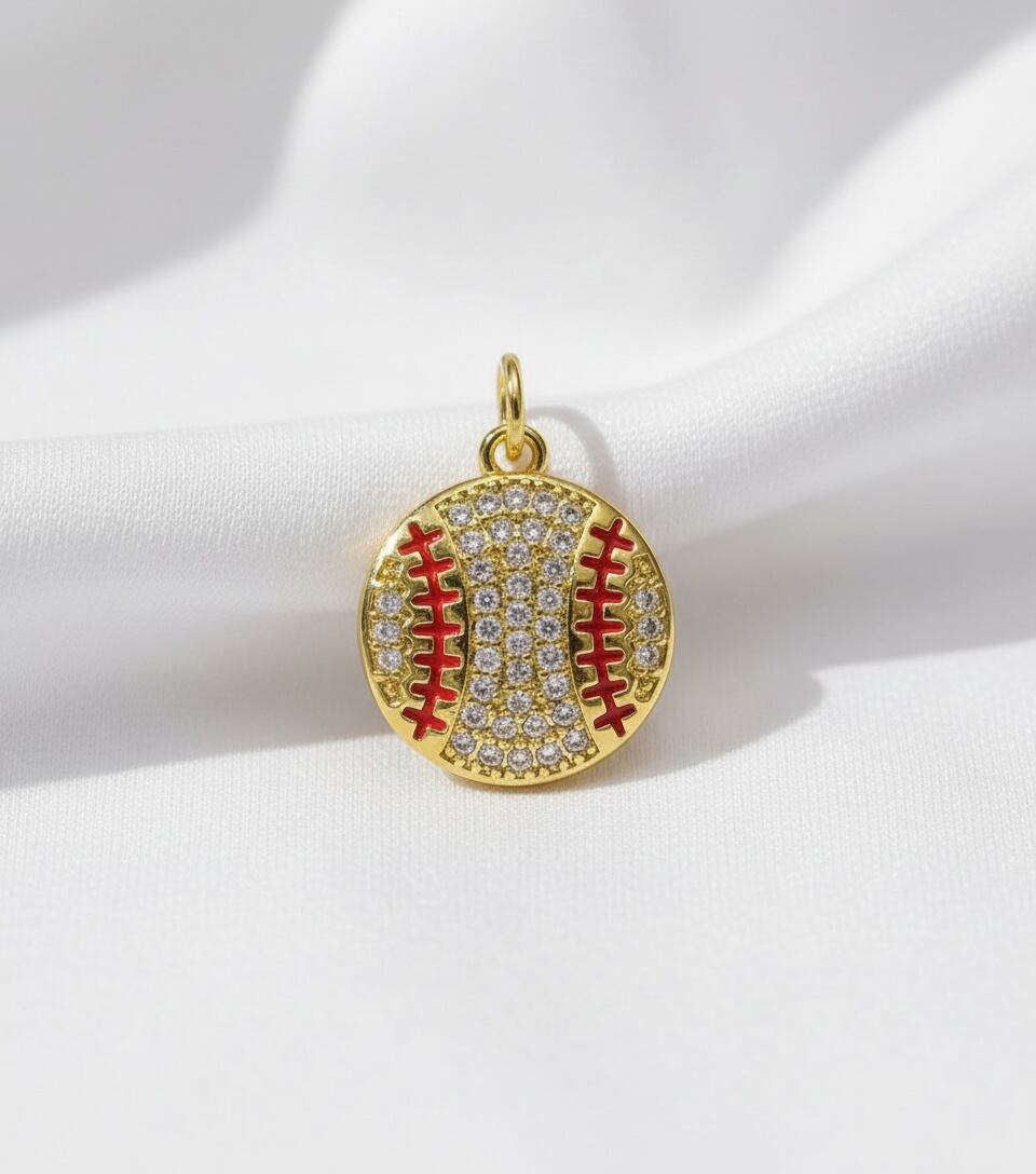 ゴールド×レッドのライン、細かなジルコニアがかわいい野球ボールチャームです。