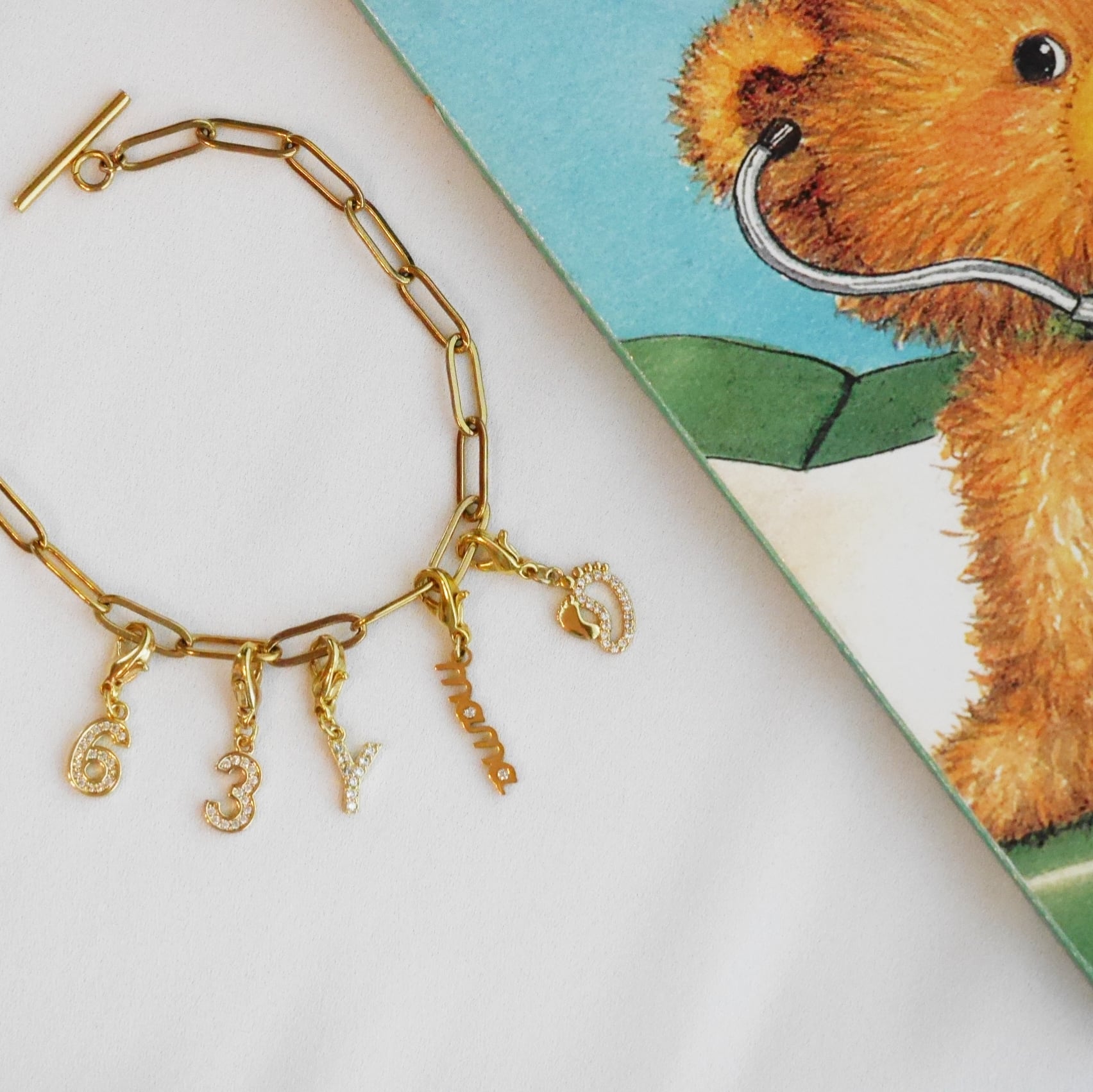 イニシャル や誕生日のナンバーチャームなどと合わせて”ママ”へのご出産祝いにもGood。